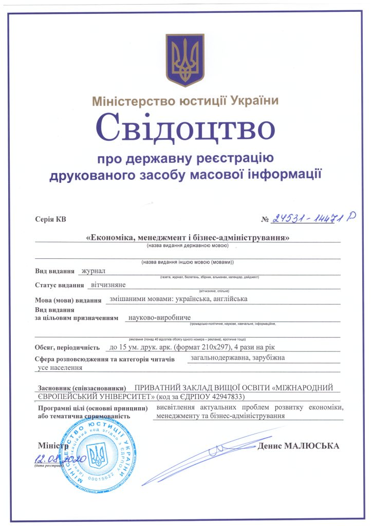 Запрошуємо Вас до публікації у науково-виробничому журналі «Економіка, менеджмент і бізнес-адміністрування» (засновник – ПЗВО «Міжнародний європейський університет», м. Київ).
